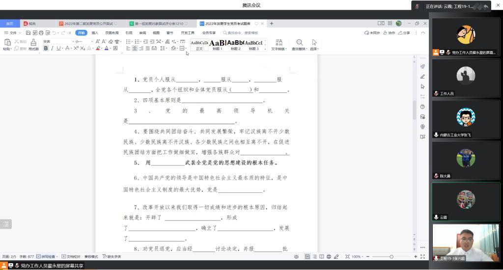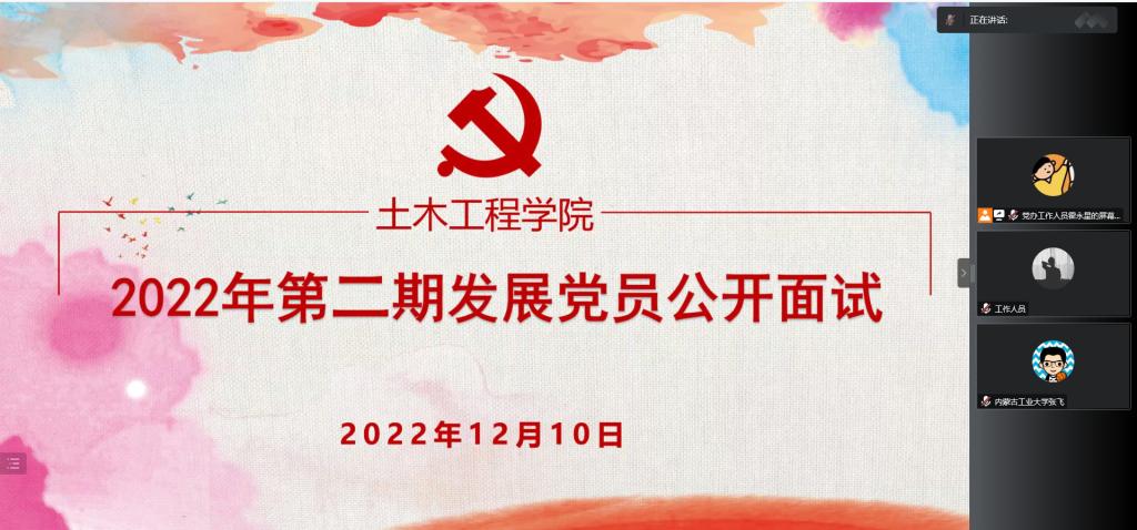 为确保党员发展质量,严把党员入口关,12月10日晚,公司党委通过线上形式组织了2022年第二学期发展党员答辩会。240名发展对象参加答辩,公司党委委员、党支部书记、教师党员代表和员工党员代表共计30人担任评委。