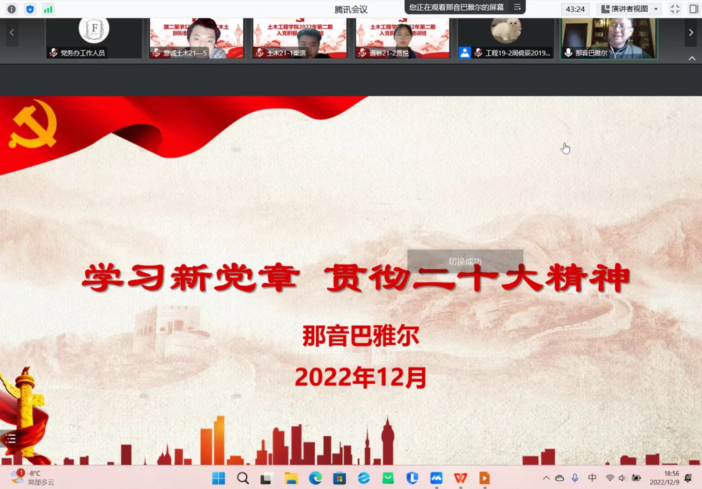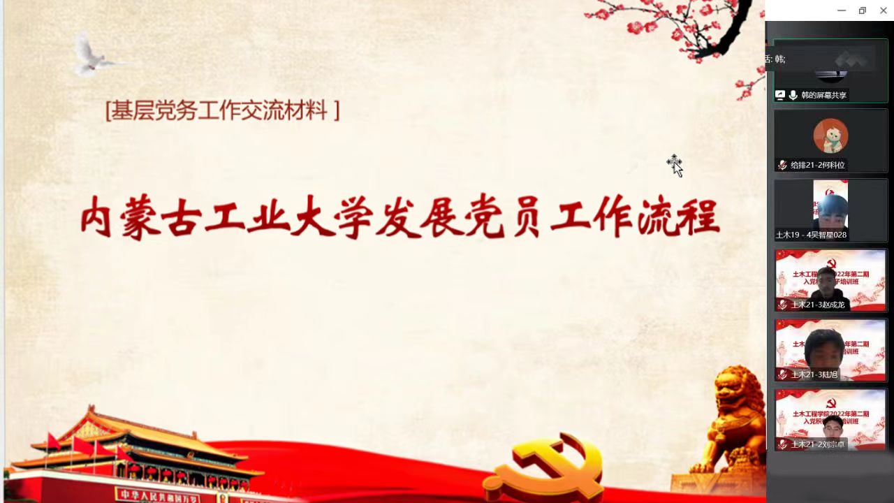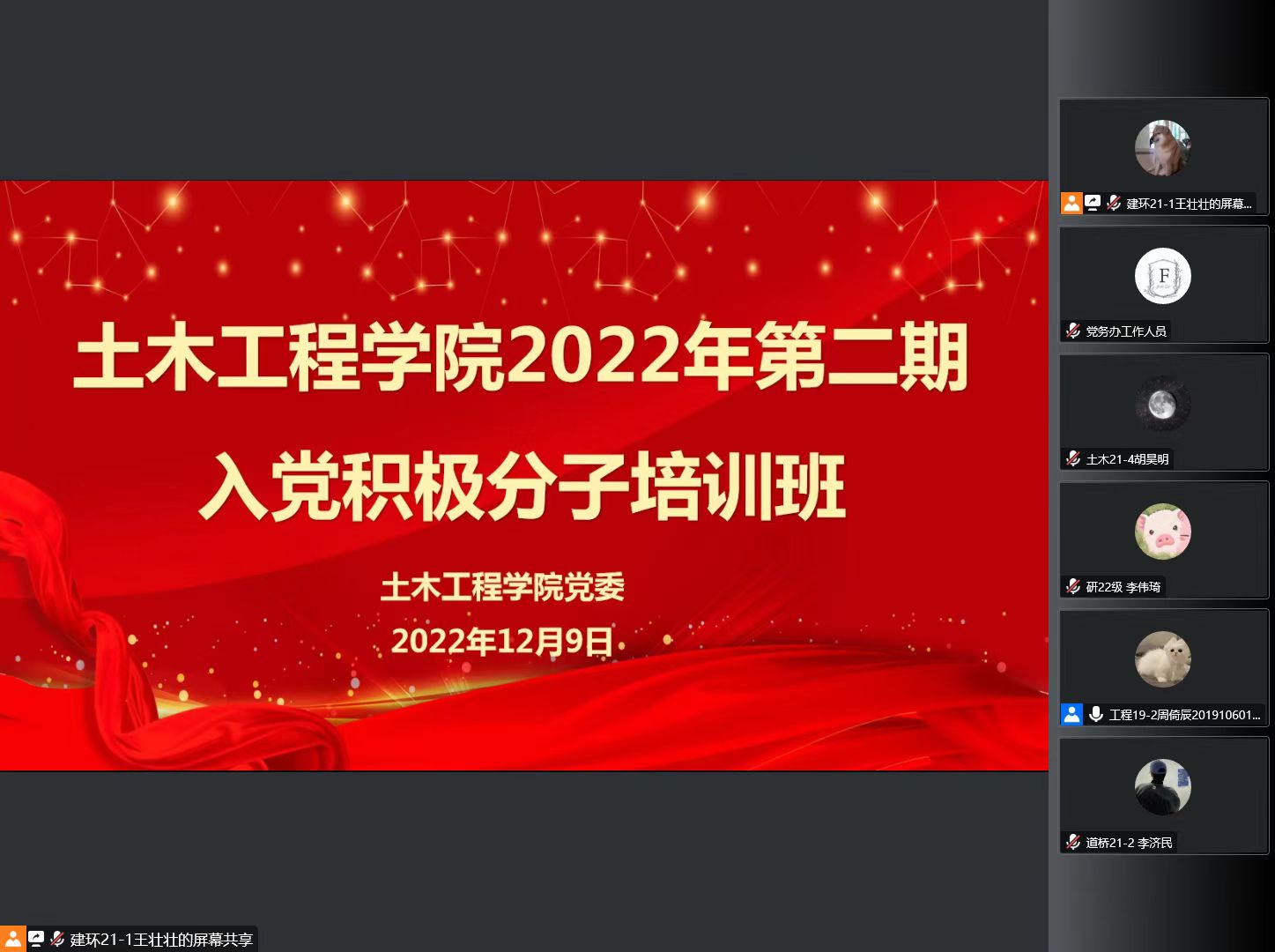 为切实提高公司入党发展对象的政治思想觉悟,进一步坚定理想信念,端正入党动机,保证发展党员质量,根据《中国共产党章程》《中国共产党发展党员工作细则》和学院2022年党建工作安排,12月9日-15日,学院举办2022年第二期积极分子培训班。