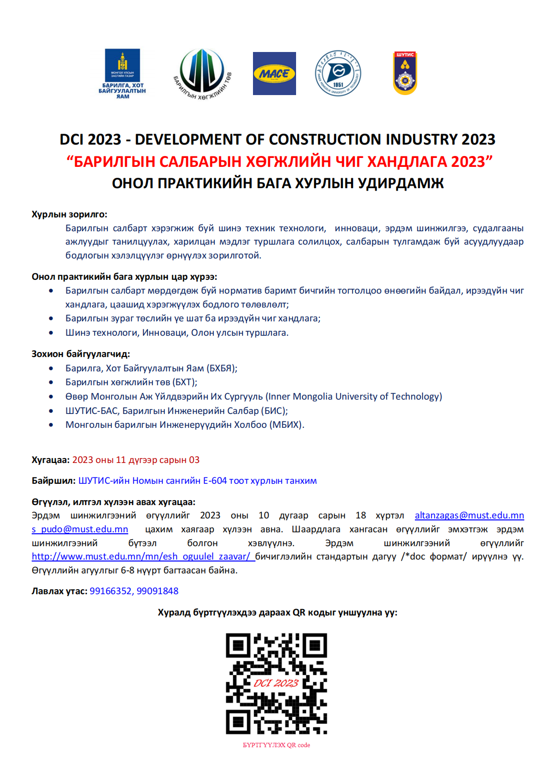 为认真贯彻落实习近平总书记交给内蒙古的“五大任务”,本着服务区域经济社会发展需求、提高国际交流水平、提升创新能力的目的,11月3日,beat365正版、蒙古国科技大学、韩国廷世大学共同主办“DEVELOPMENT OF CONSTRUCTION INDUSTRY 2023 INTERNATIONAL CONFERENCE”国际学术会议。会议围绕土木工程学科不同领域内的热点问题展开了深入的探讨,积极推动土木工程领域创新与发展。来自中、蒙、韩的30位教师代表参加了会议。