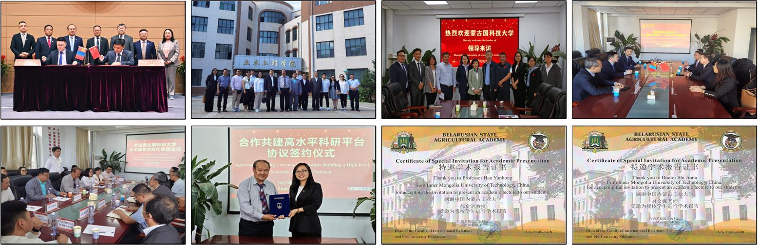 积极响应国家“一带一路”倡议,发挥内蒙古联通俄蒙的区位优势,学科与蒙古国、俄罗斯、白俄罗斯、哈萨克斯坦、乌兹别克斯坦等多所高校开展人才培养、合作办学、学术交流合作。其中,2023年蒙古国科技大学董事长3次带队到访学科点开展合作交流,成立中蒙国际成果转化与技术转移中心,联合举办国际会议,签订共建高水平科研平台协议,联合申报政府间国际科技项目;与白俄罗斯-俄罗斯大学等高校建立长效交流合作机制。向北开放重要桥头堡作用持续凸显。