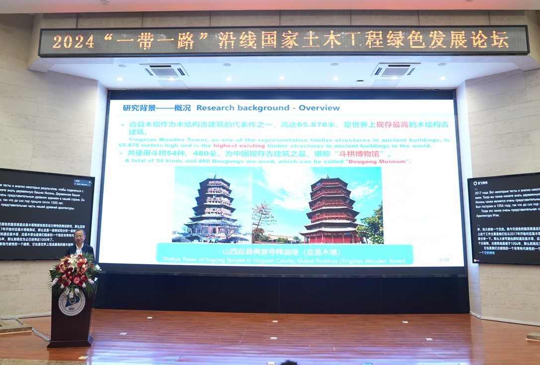 薛建阳教授、邢国华教授、赖志超教授、刘阳教授、白叶飞教授、白俄罗斯工程院院士谢尔盖·列昂诺维奇、阿萨杜拉·霍塔莫夫教授等7位专家围绕“土木工程绿色低碳发展”进行主旨发言。