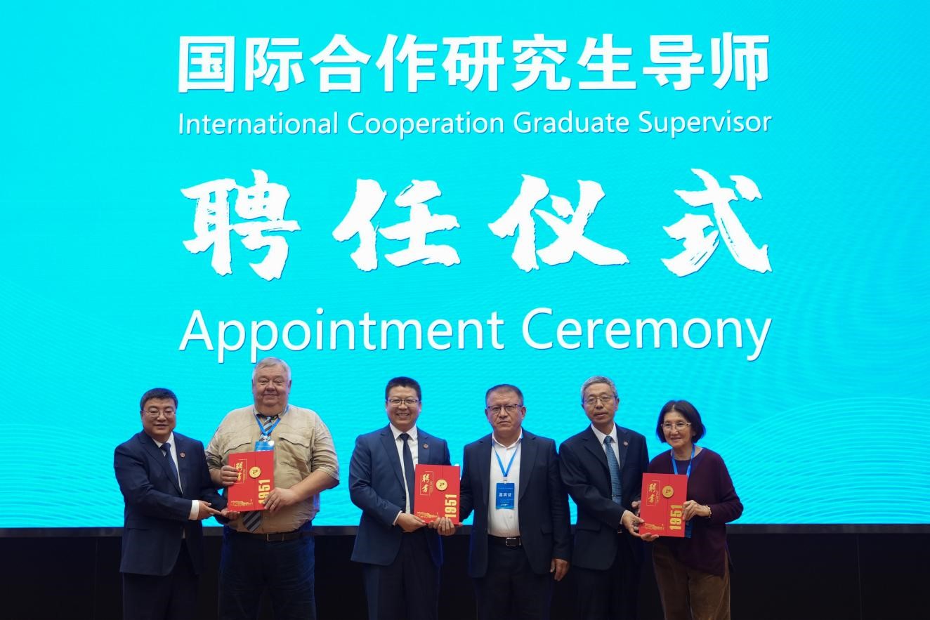 副董事长郝贠洪、公司党委书记张翔、副经理白叶飞分别为3位外籍专家颁发研究生导师聘书。