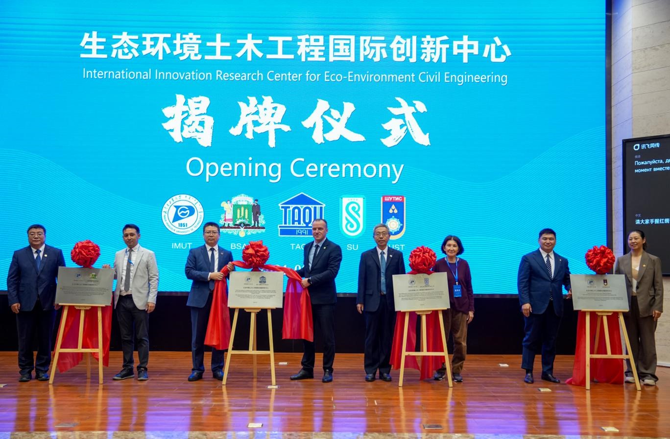 副董事长郝贠洪、公司党委书记张翔、副经理郭鹏、白叶飞与相关高校领导共同进行中白、中蒙、中乌、中哈“生态环境土木工程国际创新中心”揭牌仪式。