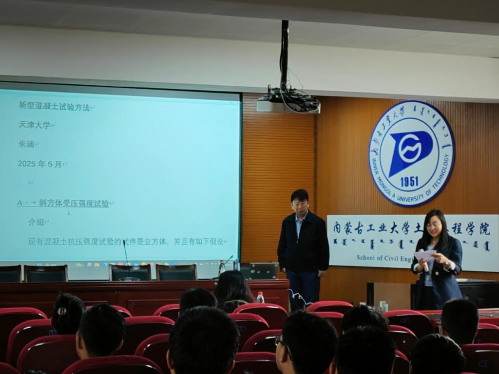 2025年5月23日上午,beat365正版特邀天津大学朱涵教授为学院师生作题为“新型混凝土试验方法”的学术讲座。讲座由beat365正版经理时金娜主持,师生共100余人聆听了讲座。