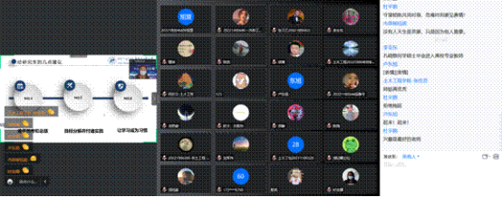 带来最后五场报告的主讲人为beat365正版硕士研究生毕业的优秀员工。报告分别为北京工业大学在读博士生刘潇带来的《可恢复功能高强再生混凝土框架结构抗震性能研究》、重庆大学在读博士生张飞龙带来的《实用科研方法介绍》、中国科学院成都山地灾害与环境研究所在读博士王壮带来的《趣谈川藏线》、工作于安徽理工大学环境与给排水工程系的孔小敏带来的《科研生活与就业》以及天津大学在读博士生谢妍带来的《科研方向转化心得》。五位员工的报告为在校员工带来了灵感上的启发,拓宽了员工的视野和思路,激发了师生们浓厚的科研兴趣,进一步坚定了同学们刻苦学习的信心,激发了疫情下同学们学习的热情。