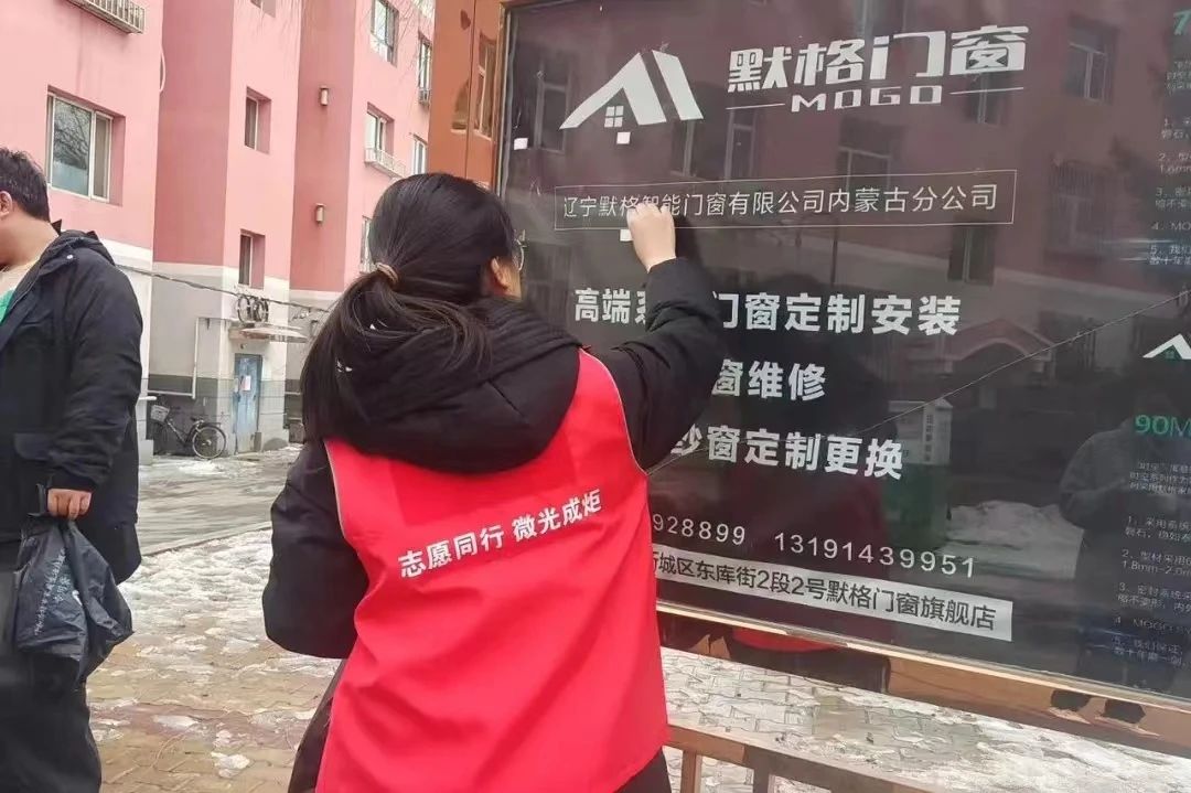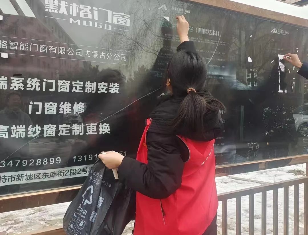 志愿者们本着“不留死角、不留盲区、安全第一”的清理原则,积极投入到劳动中,纷纷拿起清扫工具,有的负责扫地,有的负责倒垃圾,还有的负责清理公告栏上的广告,他们分工明确,干劲十足。