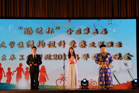 6月29日晚,“路达杯”自治区第五届老员工结构设计大赛文艺演出暨公司2017届毕业生晚会在公司新城校区文体馆举行。公司党委书记韩伟新、副书记、副经理梁晓勇、副经理郝贠洪、正处级组织员郝英豪、竞赛协办单位代表,来自全区6所高校的结构竞赛队师生,土木学院400余名师生参加晚会。
