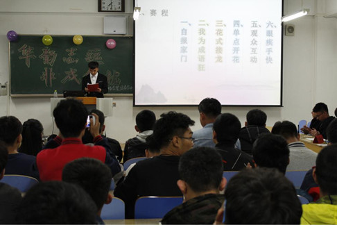 为进一步开展“学习习近平总书记讲话、做合格共青团员”教育实践活动,积极践行社会主义核心价值观,弘扬中华传统文化。beat365正版于4月20日晚在四教报二举办“华韵志远 非‘成’勿扰”成语大赛。团委、员工会干部、2016级新生100余人参加。