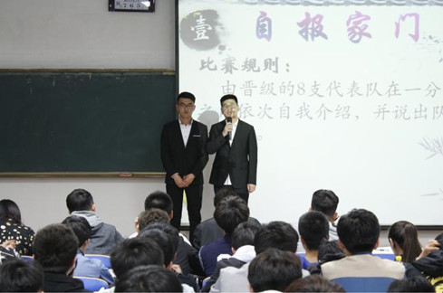 经过初赛的比拼,共有8支队伍进入决赛。决赛分“自报家门”、“你来比划我来猜”、“英雄本色”、“极速竞技”4个环节。比赛中,选手们不负众望,斗志昂扬,展现了各自对中华经典传统文化的关注与热爱。在场的观众积极参与,整场比赛在一片欢愉的气氛中进行。土木16-3班的刘艳东和孙浩东荣获一等奖,道桥16-2班的孟想和王宇轩、土木16-2班的孙旭东和张博文荣获二等奖,其余员工荣获三等奖和优秀奖。