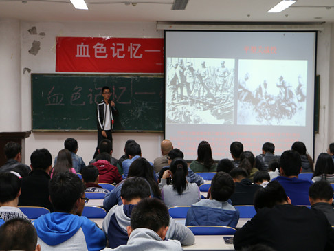 本次活动分初赛、决赛两部分。在10月12日的初赛中,5位选手从30名参赛者中脱颖而出。决赛在9·3阅兵视频和嘹亮的国歌中拉开了帷幕。整个活动分4个环节,首先,5位选手分别以“血色记忆”为主题,开始计时3分钟的主题演讲,他们或就历史中的关键性事件来谈感悟,或结合自身来谈发展,个个慷慨激昂,将大家拉回到了那个充满了革命色彩和英雄凯歌的年代。第二环节,采取抽题的方式,就某一个有关抗战历史的问题,发表自己的见解,考验大家应变能力和表达能力。第三环节,校“A顿话剧团”带来的话剧表演《战火中的老员工》,全体员工将活动推向高潮。最后环节,大家认真观看了公司员工军训期间的采访视频并集体演唱《保卫黄河》,给新生留下了宝贵的回忆。