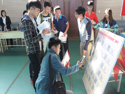 文体馆内,精心布置学院迎新报到点,为员工办理验证身份、打印报道流程单,办理绿色通道等各项服务。今年,公司迎新工作,在总结以往工作基础之上有所创新:新生报到之前,便建立了15级新生班主任联系方式及班级群二维码,并制作成展板摆放着报道点,方便员工在报到后立即找到班级组织。