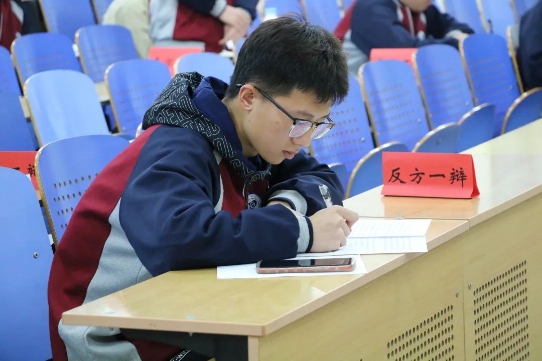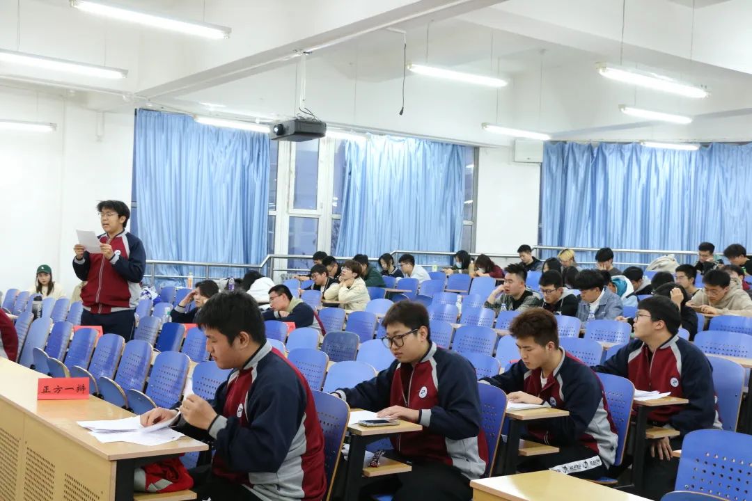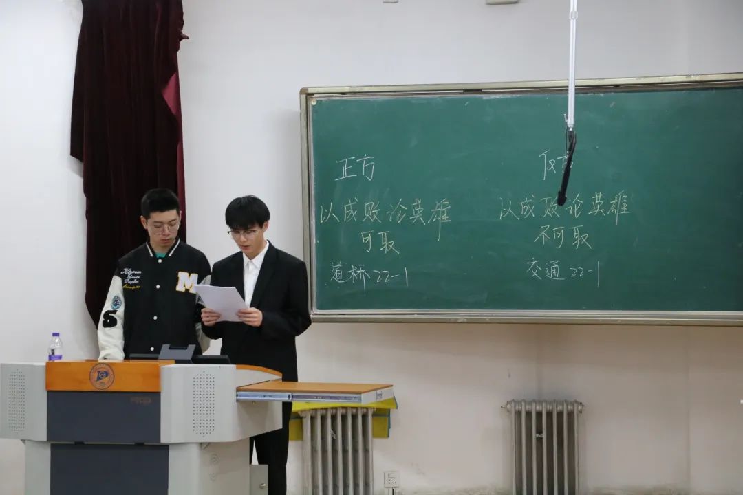 在辩论场上,一方步步紧逼,一方泰然自若,舌枪唇剑,好不精彩!你有哲理盾,我有事实矛,辩手们谁也不甘下风,他们棋逢对手,在辩论赛上妙语连珠,文思飞扬,充分展现了个人的才思与激情。在半决赛交通22-1与道桥22-1比赛中,交通22-1队伍在辩论赛中取得优秀成绩,晋级决赛。由于建环22-2取得复赛小组最高分,所以轮空半决赛,成功挺进决最终决赛。