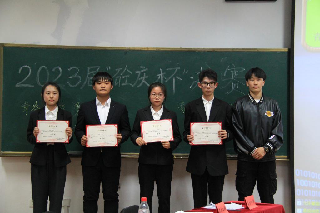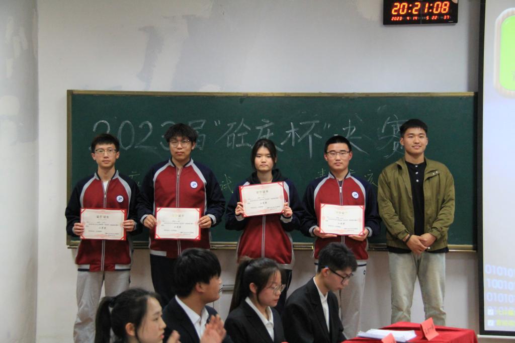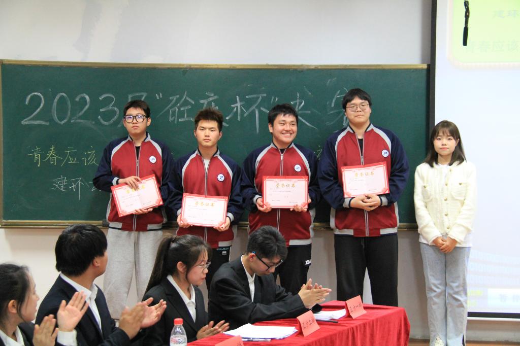 在颁奖仪式中,他们站在颁奖台,脸上洋溢着笑容,我们为他们的妙语连珠,口齿伶俐喝彩。他们个个立论铿锵有力,攻辩角度独特,也让我们领略了针锋相对的竞争美。在感谢交通21-1、建环22-2两支队伍为我们奉献精彩的对局同时,也恭喜建环22-2获得冠军!让我们为两支队伍共同喝彩。