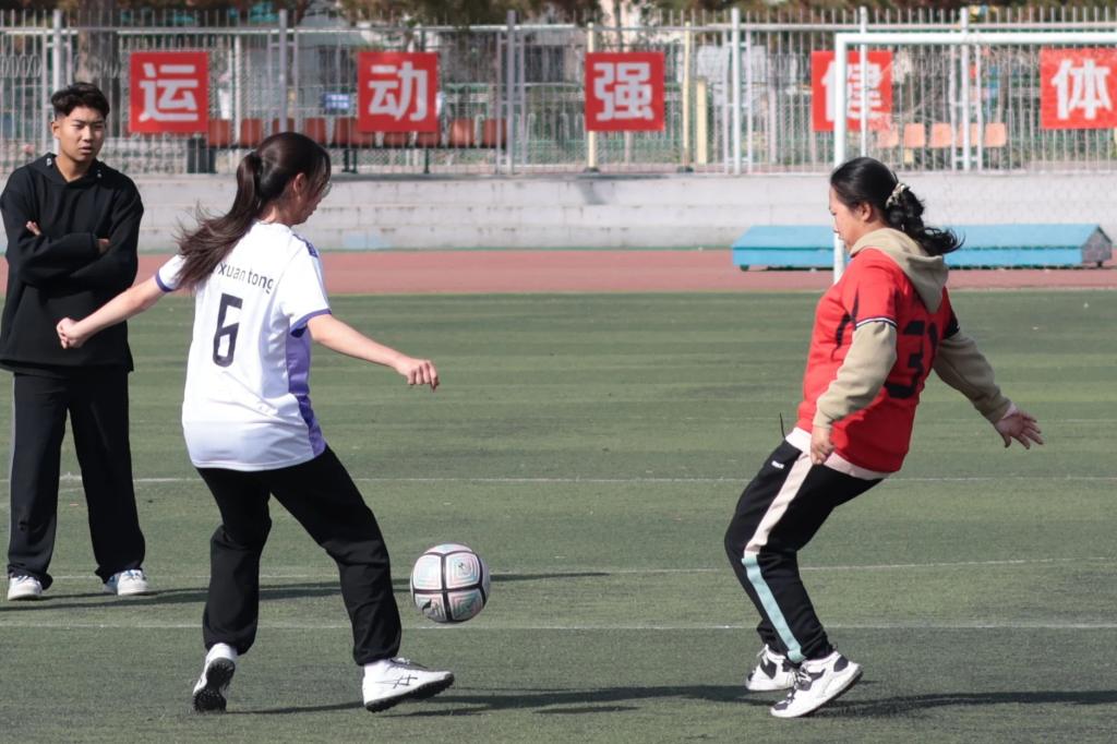女足球员们也不甘示弱,看她们矫健的身姿在球场上快速穿梭,用精湛的球技和出色的战术素养展现出了青春的活力。