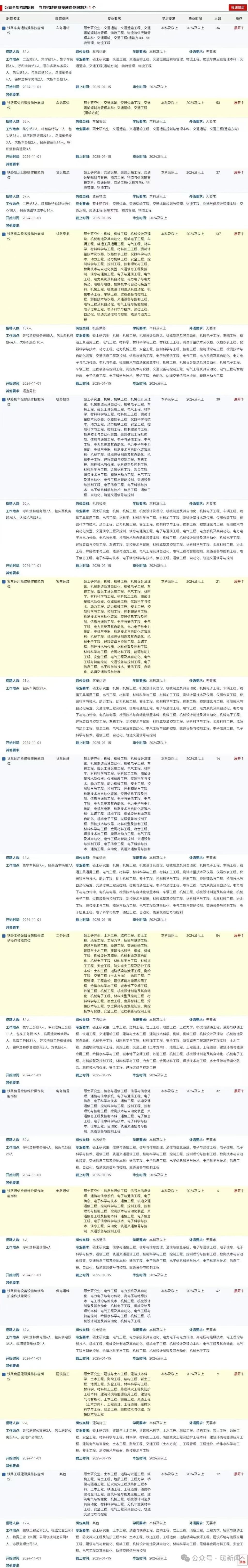 呼和浩特局集团有限公司根据企业发展需求,拟招聘普通高等院校大学本科及以上学历毕业生509人,报名采取网上报名方式,报名时间为2024年11月1日-2025年1月15日。有意应聘的毕业生在规定时间内登录“中国铁路人才招聘网”(http://rczp.china-railway.com.cn)进行报名。