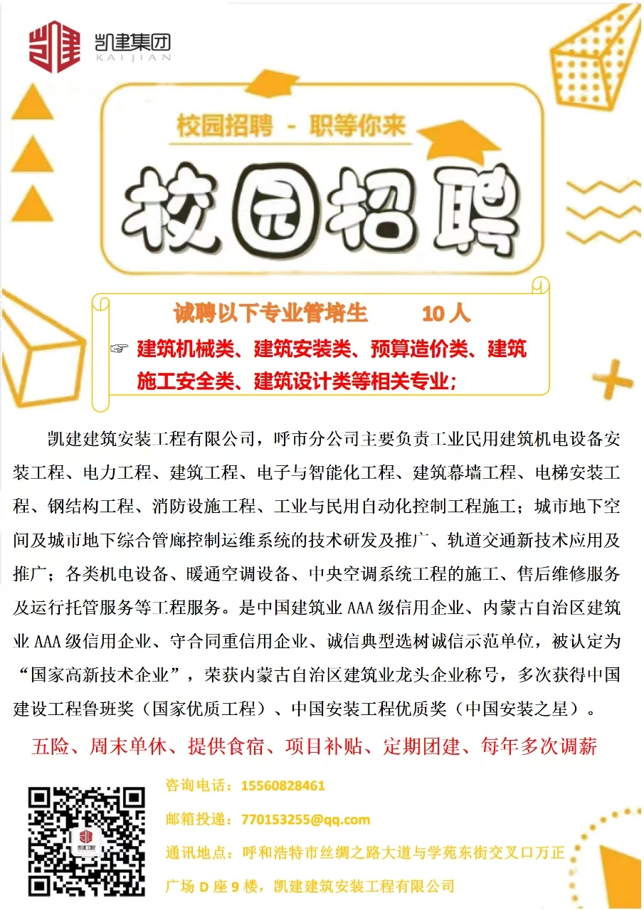 凯建集团校园专场,4月2日(明天)上午9点20,土木馆B219,咱员工所在企业,别忘了再请通知有意向的同学带简历准时参加