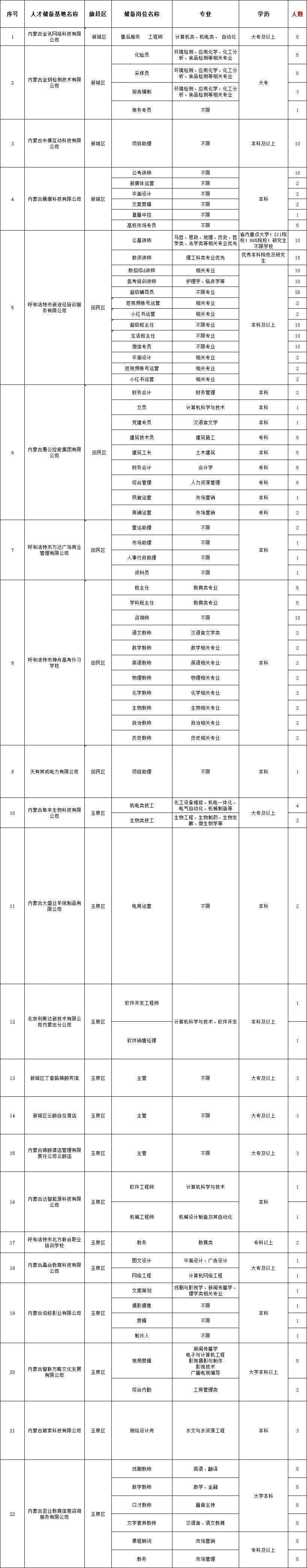 招1044人!呼和浩特人才储备岗位需求信息表(第二季度)发布