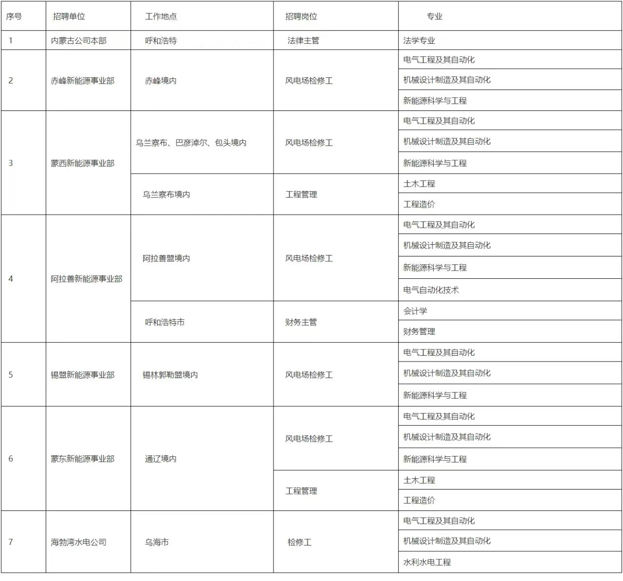 内蒙古公司现管理基层企业8家,分别是赤峰新能源事业部、锡盟新能源事业部、蒙西新能源事业部、蒙东新能源事业部、阿拉善新能源事 业部、海勃湾水电公司、唐浩公司、能源销售公司。