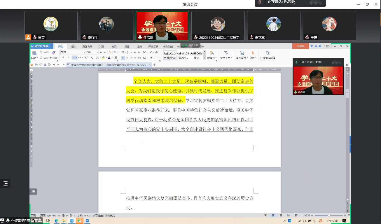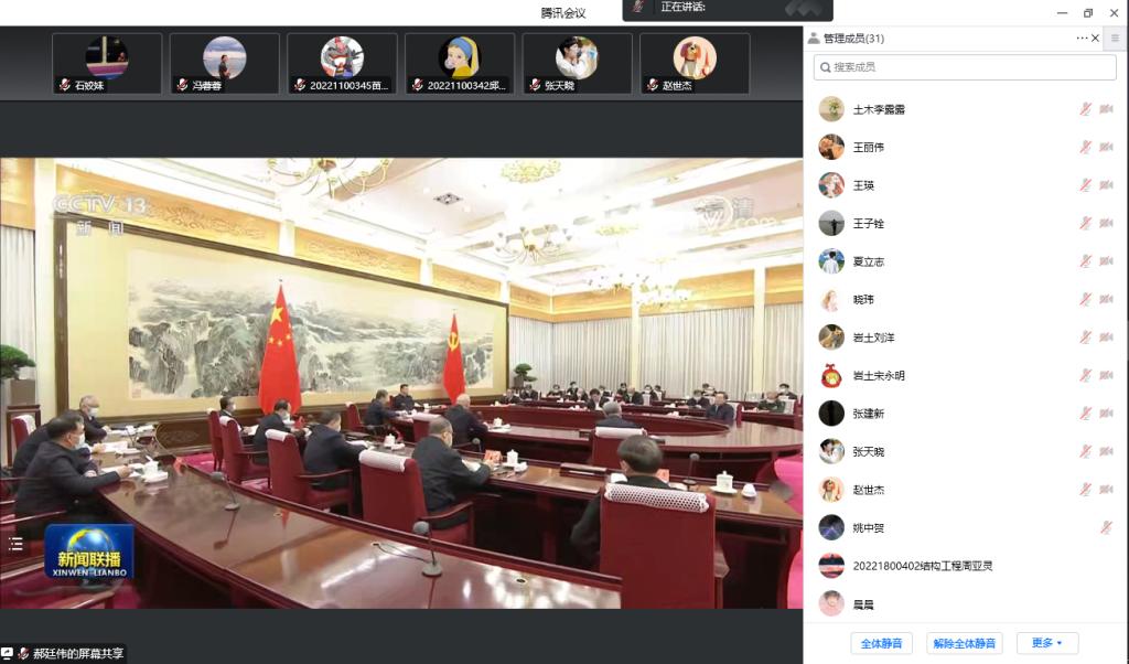 11月23日,建筑工程研究生党支部线上组织开展了关于党的二十大精神学习,会议主要以学习和研讨交流的形式进行,本次会议由支部书记田蕾主持,支部成员参会。