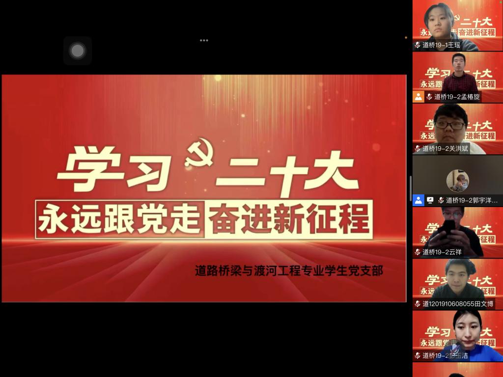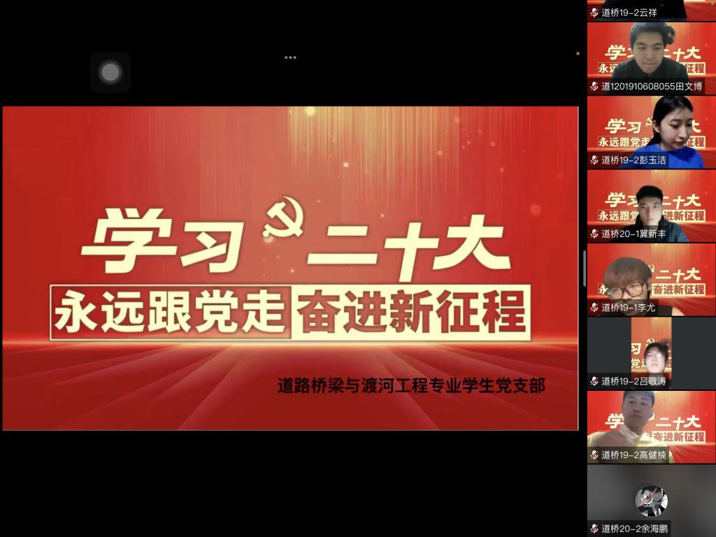 为深入学习贯彻习近平总书记关于党的二十大精神的重要论述,道路桥梁与渡河工程专业员工党支部于11月23日晚召开党的二十大精神专题学习会,支部全体党员参加。