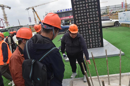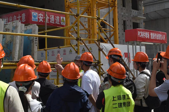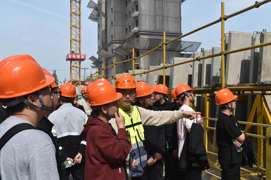 项目部管理人员向大家详细介绍了装配式施工工艺及无外脚手架施工工艺在PCTF体系中的应用,带领大家观看了预制装配式建筑的施工工艺流程视频,并通过现场天网摄像头的实时画面向同学们展示天网系统在建筑工程中的应用。随后,组织大家参观施工现场。通过现场观摩,大家直观地认识到PCTF无外脚手与传统外脚手体系的区别、PCTF体系的工艺流程以及优劣势。活动中,大家热情高涨,积极互动解疑,对PC工程有了更加直观、深入地了解。