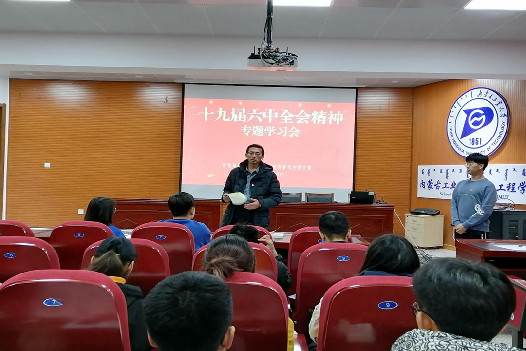 建筑环境与能源应用工程专业员工党支部于11月25日在土木馆B座219会议室召开党的十九届六中全会精神专题学习会。会议应到党员7名,实到7名,翟宇宁同志主持。