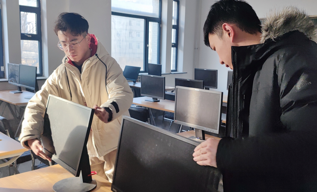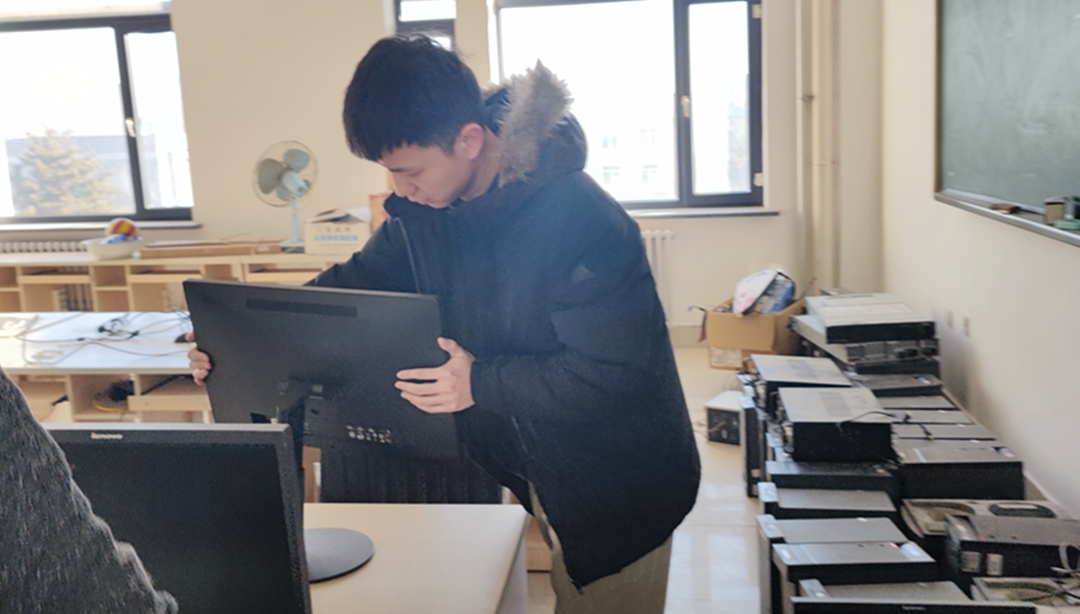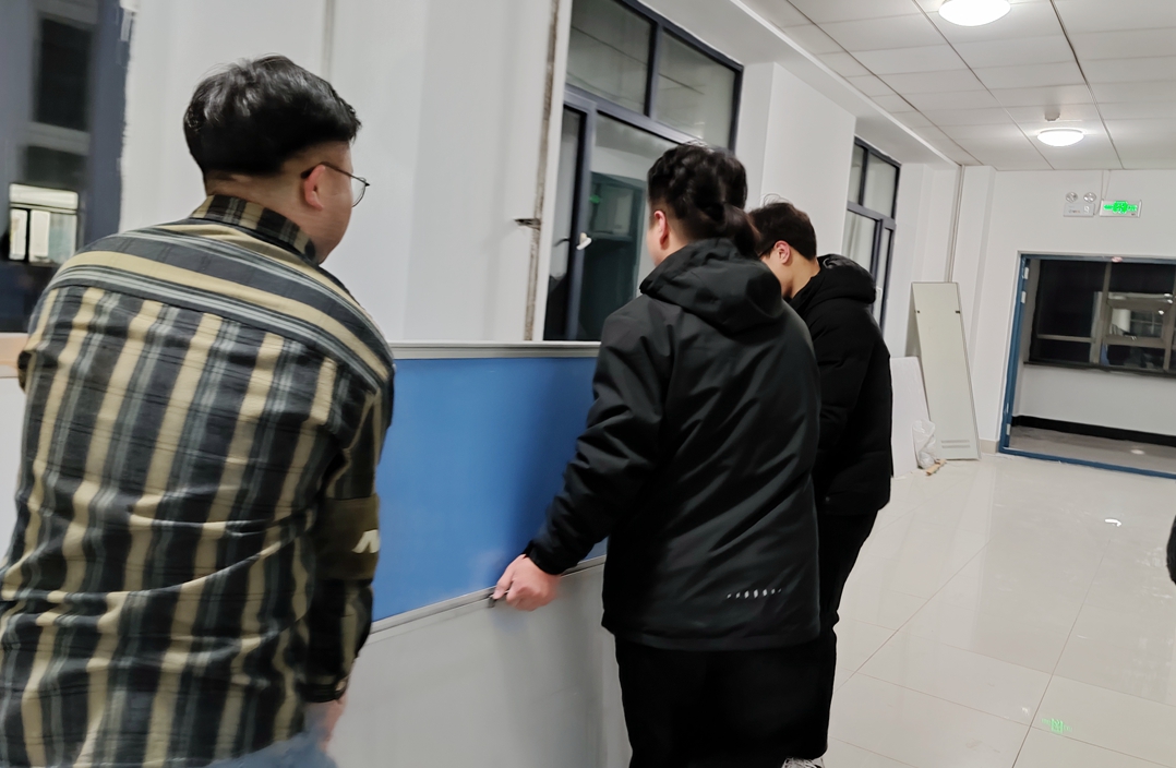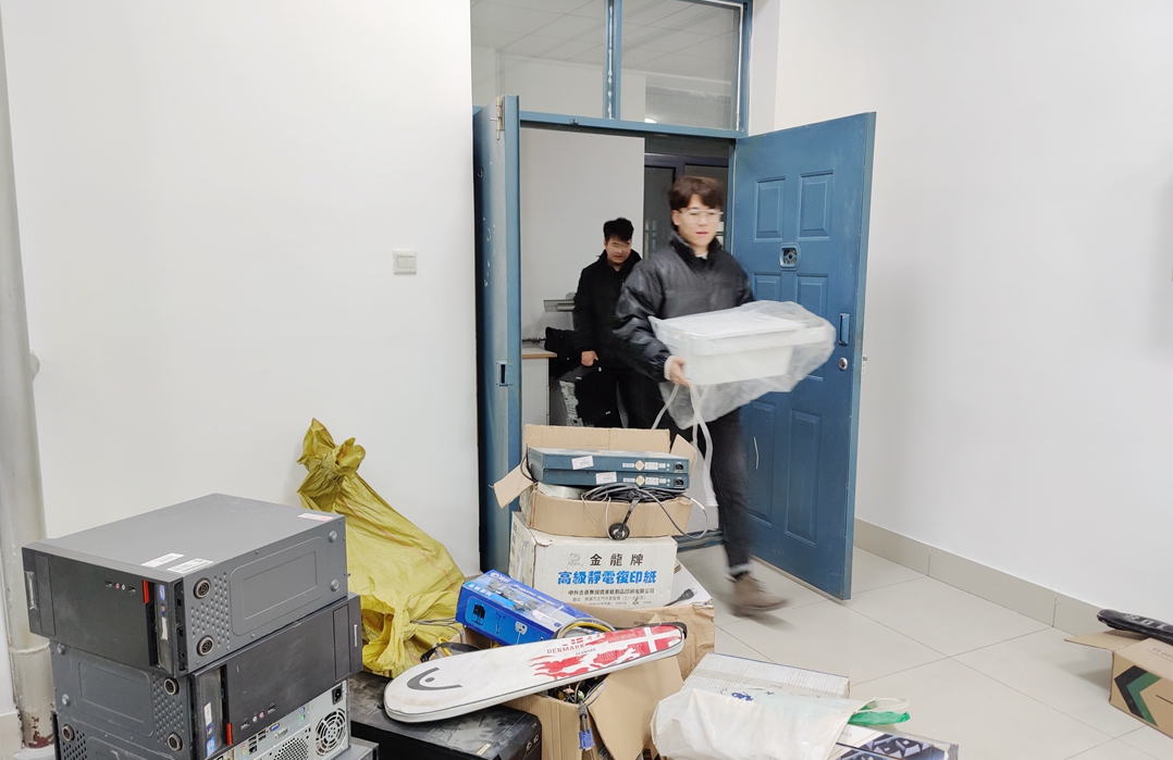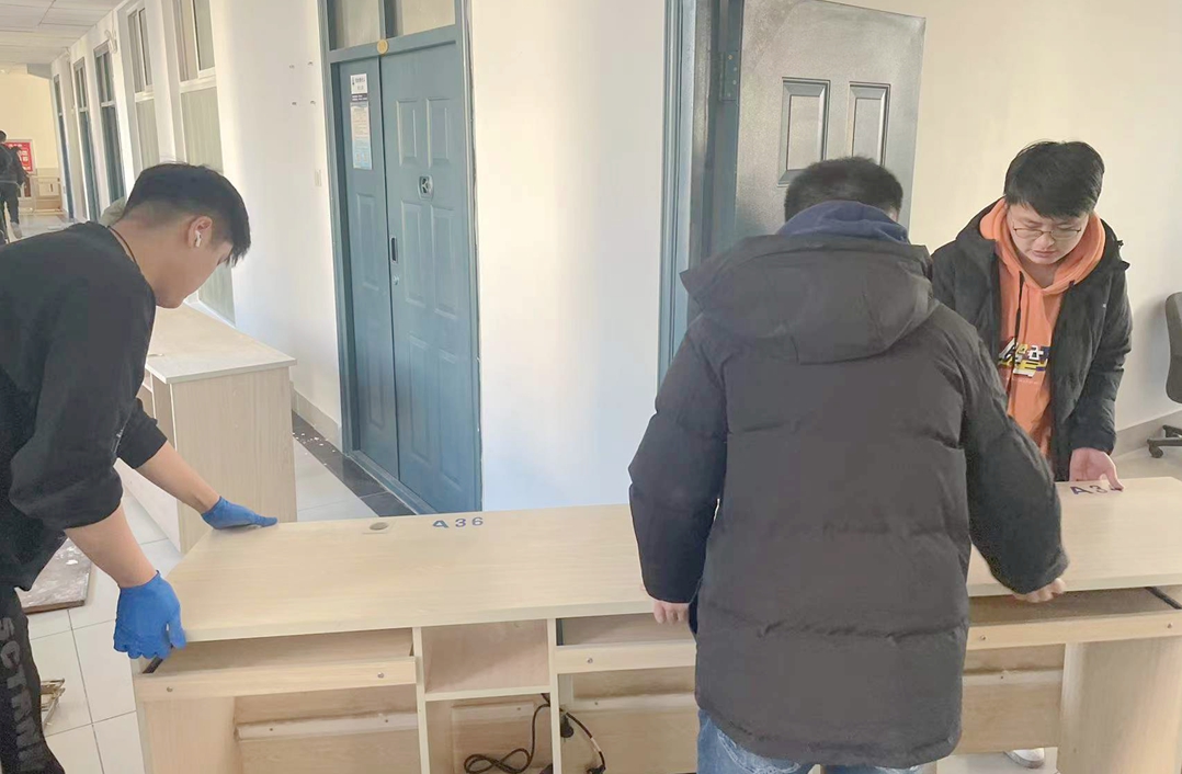 活动期间,志愿者们带着经过简单的分组和安排后开始工作。面对天气寒冷、任务重的困难局面,大家发扬不怕苦、不怕累的志愿者精神,合理分配人力、各负其责、默契配合,力求节省时间、提高效率、保证质量。搬运桌椅、安装网线、扫地、清理桌椅书柜、清运垃圾……各项任务分工明确,活动现场热火朝天,经过大家共同努力,新的办公学习环境焕然一新。