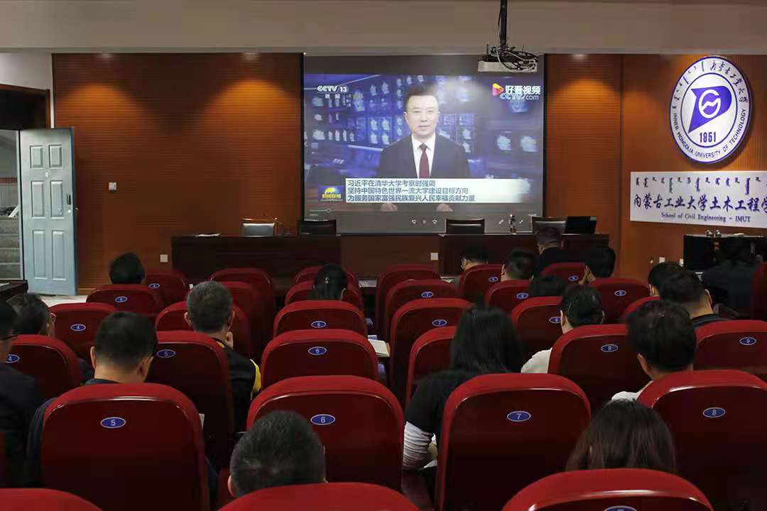 首先,大家通过集体观看习近平总书记4月19日在清华大学考察时的新闻视频,学习了习近平总书记考察清华大学时发表的重要讲话精神,为了使大家便于进一步理解讲话,那音巴雅尔领学了人民日报评论员文章《为服务国家富强民族复兴人民幸福贡献力量》;副书记、副经理陈辉领学了《让青春在不懈奋斗中绽放绚丽之花》等文章。