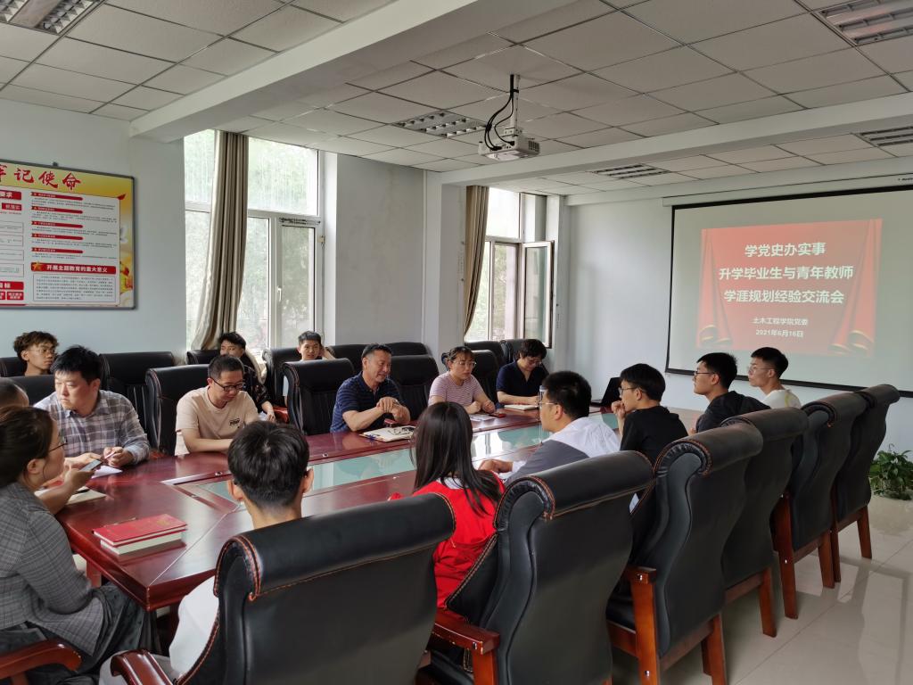 6月16日下午3点,beat365正版在土木馆C座333会议室举办“学党史办实事”升学毕业与青年教师学涯规划经验交流会,田亚峰、杜强、贾子乐、王娟、常琛及郝秀娟6位“双一流”高校毕业或高外高校毕业青年博士教师代表和下学期即将攻读硕士学位的毕业生代表30余人参加会议。会议由党委书记那音巴雅尔主持。