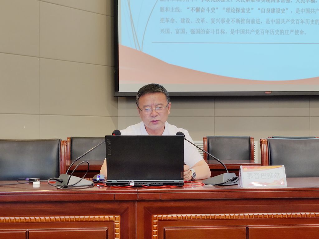 党课上,那音巴雅尔从党史发展脉络、百年党史总结、践行初心使命等方面,运用丰富的史料、生动的事例、翔实的数据,系统阐述了中国共产党成立100年来,从小到大、从弱到强,攻坚克难,一路成长的伟大征程。