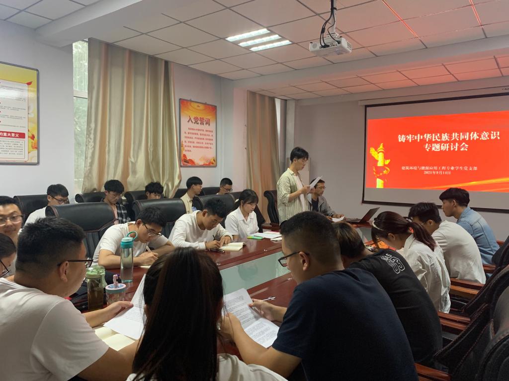 建筑环境与能源应用工程专业员工党支部于2021年9月14日在土木馆C座333会议室召开了铸牢中华民族共同体意识专题研讨会,应到党员7人,实到党员7人,会议由翟宇宁同志主持。