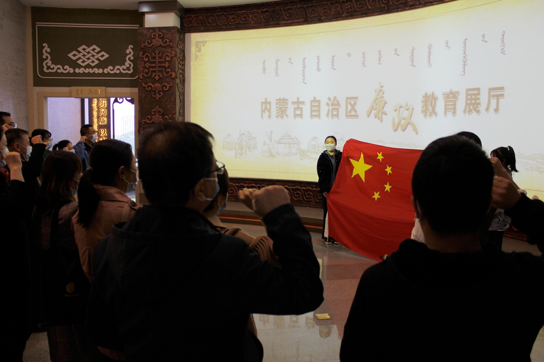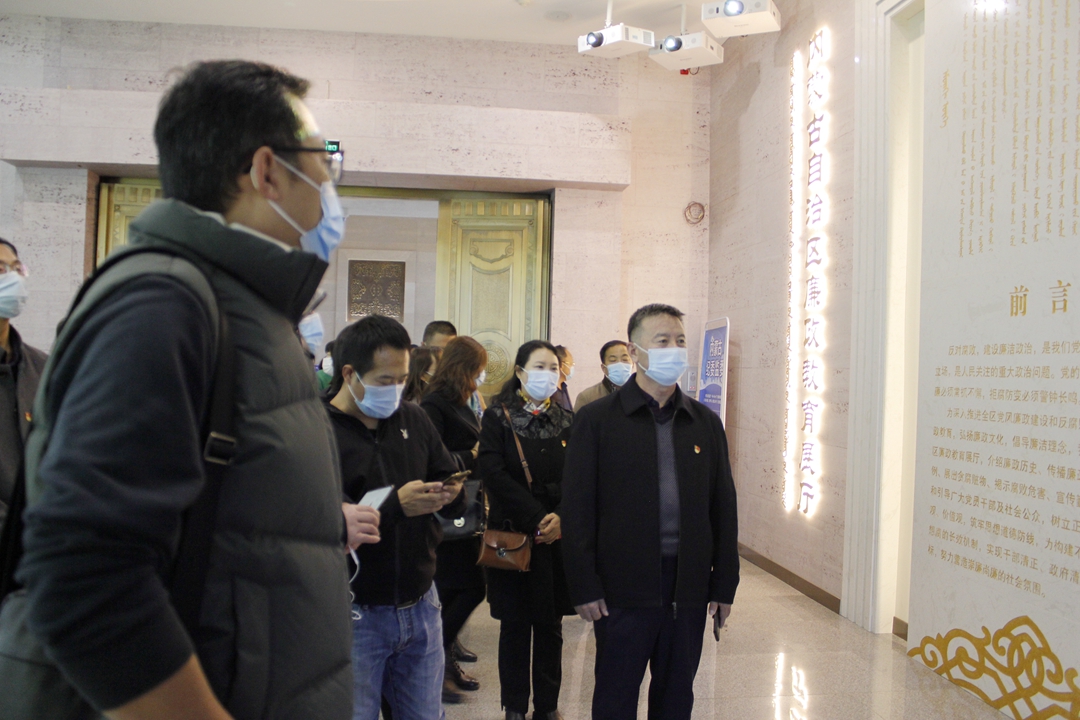 在讲解员的引领下,大家仔细观看了廉政教育展厅的“史海问廉、以古鉴今”“惩腐肃贪、世界纵览”等7个展区。通过大量真实的案例资料和佐证实物,进一步了解了廉政历史、廉政文化、典型案例、及贪腐危害等。同时也认真观看了乌兰夫、牛玉儒、都贵玛、廷巴特尔等人物事迹介绍影像播放。通过观展大家系统全面地回顾了党的反腐历程,以及近年来自治区党风廉政建设和反腐败斗争取得的成效,并通过音视频情景再现等技术,身临其境地感受腐败带给个人和家庭的巨大伤害。