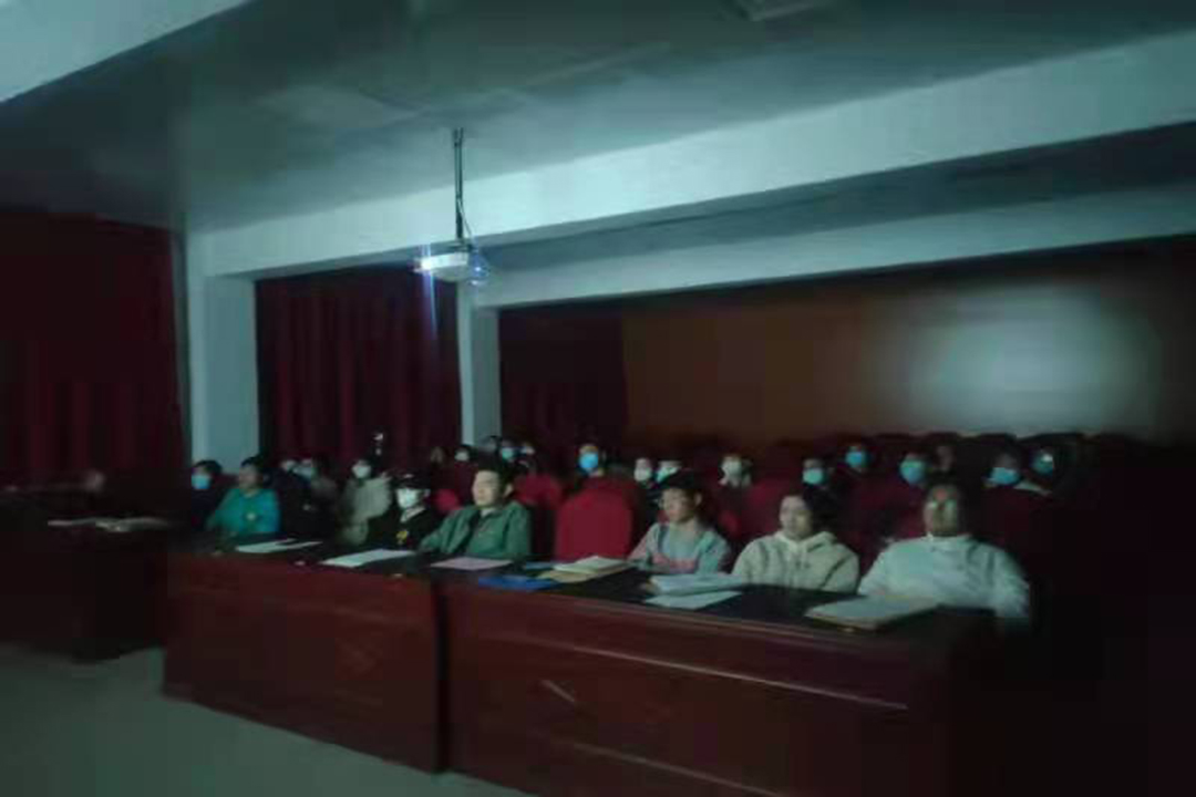 在观看学习的过程中,每位观影人员都聚精会神。在抗议纪录片《无问风雨,呼吸与共》中讲述了中国军民在抗击新冠肺炎疫情中发生的的人和事:他们中有义无反顾为人民建起一座白衣长城的医护工作者;有万里赴戎机、八方支援的各地医疗队员;有秉承革命军人优良传统、闻令而动、誓死不退的军医;有自救互救、守望相助的普通市民;有积极投身火神山医院的建设者等。其实每个人都是一个个小人物,但是我们爱国的热情和决心不比任何一个人差,我们小人物也能贡献出小人物的力量。