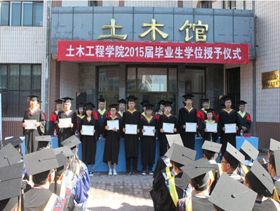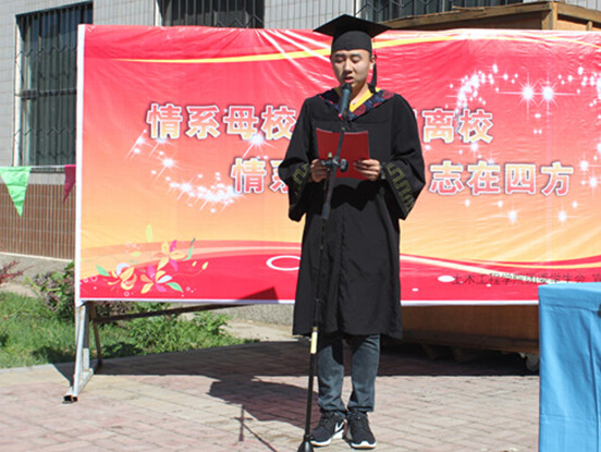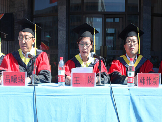 学位授予仪式在庄严的国歌声中拉开帷幕。党委书记韩伟新宣读内蒙古自治区高等学校土建类专业优秀毕业设计的表彰决定,随后,颁发优秀毕业设计证书。副经理郝贠洪宣读授予硕士学位和学士学位的员工名单,员工依次上台,各位老师为获得学位的员工扶正流苏、颁发学位证。工程11-班毕文亮同学作为毕业生代表发言。