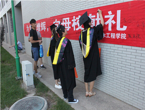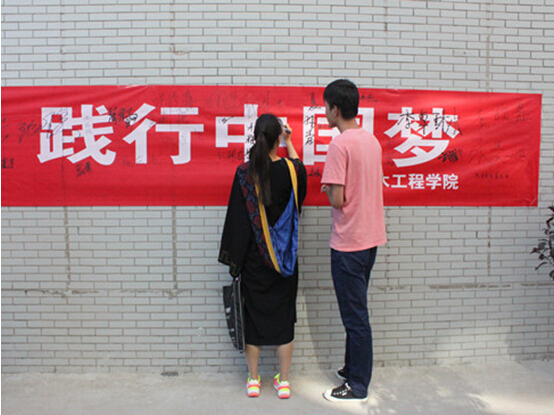 值此中国共产党成立94周年之际,在学位授予仪式开始前,毕业生们纷纷在“为党旗增辉,向母校献礼”的条幅上签名,表达对党的节日的祝贺和对母校的眷恋之情。