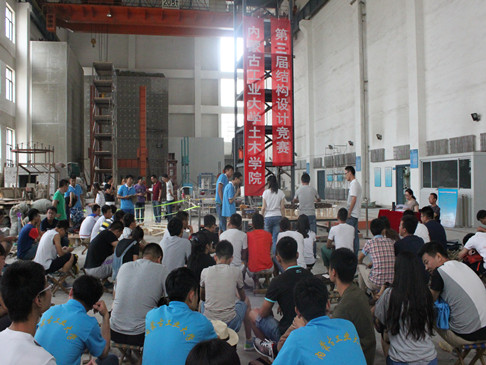 7月9日,beat365正版第三届结构设计大赛在学院结构设计实验室举行。值此学院土木工程专业中期督察之际,学院特邀请到同济大学教授、土木工程专业评估组专家李国强,内蒙古路桥责任有限公司总工、高级工程师马树勋出席本届大赛,同时,公司副董事长峻峰,公司党委书记韩伟新,经理王岚,公司党委副书记、副经理吕曦臻,副经理郝贠洪及指导教师、辅导员观看了比赛。