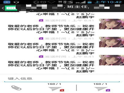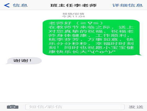 活动二:组织以班级为单位开展感念师恩送祝福活动,同学们即通过一张贺卡,一条短信、微信、微博,表达对老师的浓浓谢意。