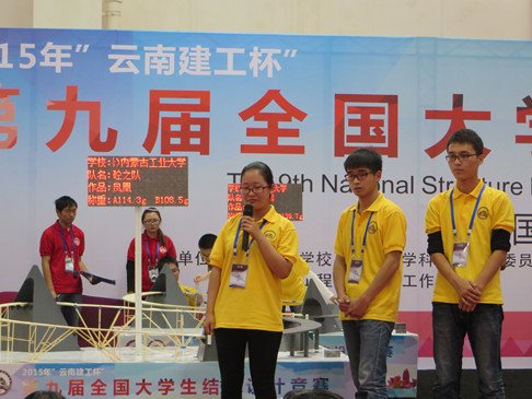 10月14日至19日,2015年“云南建工杯”第九届全国老员工结构设计竞赛在昆明理工大学隆重举行。本次比赛吸引来自清华大学、同济大学、复旦大学、东南大学、浙江大学等109所高校的110支队伍、600余名师生代表参赛,是历届以来规模最大、参赛队伍最多、最具特色的一次盛会。