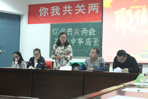 座谈会伊始,大家通过观看视频短片:“70秒解读两会”、“解读两会热点”了解我国的“创新、协调、绿色、开放、共享”的发展理念及时下的热点议题。随后,就“两会”中提出的关键词和热点话题展开了激烈的分组讨论,如“供给侧改革”、“绿色发展”、就业创业、“工匠精神”、“一带一路”等,各组代表发言时见解独到,赢得阵阵掌声。“游戏互动”、“两会知识延伸”环节,向大家介绍“两会”的基本常识。最后,段辉老师对同学们能够认真关注、学习两会的热情给予充分肯定,同时,要求大家关心时事、关心社会,能够自觉承担社会责任。