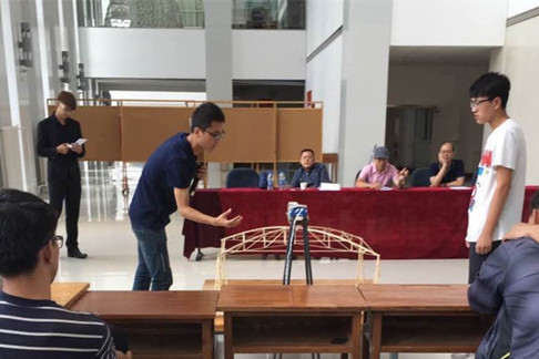 经过12小时紧张的模型制作,近3个小时的静荷载加载环节后,参赛队员们紧张而又沉稳地在其模型上放加载材料,一个个用竹皮、竹条制作而成的房顶模型承受起了惊人的重量。此次比赛在紧张和刺激中进入尾声,着实是一场技术与心理上的较量!最终,公司beat365正版组成的4支队伍,在史勇老师的指导下取得优异成绩,荣获1个一等奖、2个三等奖、1个优秀奖。