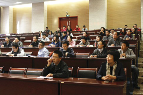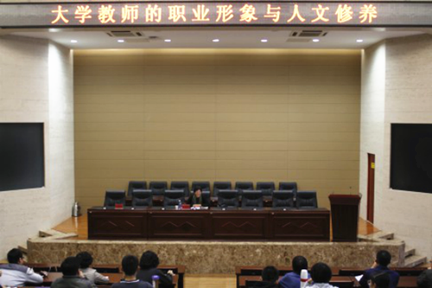 李树榕教授以“文化”的概念为切入点,旁征博引、深入浅出的阐述了关于文化的三种定义,用“好习惯、高水平”六个字诠释了修养的内涵,指出好的教师要在本专业领域通透教材,做到“概念无盲点”,形成自己建设性的意识、见解。李老师谈到了如何从语音、语速、语气、手姿以及目光等细微处着手来塑造良好的教师形象,她的语言风趣幽默、举例涵盖中西,赢得了台下听众的阵阵掌声。李老师追根溯源,以说文解字中“德”字的构造和释义指出“外得于人,内得于心”才是德的真谛,为广大教师“师德”的树立指明了方向,确立了标准。最后,李老师引用纪伯伦《先知》中经典的语句作为结束语,“生活的确是黑暗的,除非有了渴望;所有渴望都是盲目的,除非有了知识;一切知识都是徒然的,除非有了工作;所有工作都是空虚的,除非有了爱”。希望教师们带着爱去工作,做一名积极向上、热爱生活的好教师。