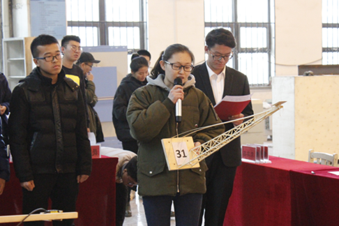整个比赛分为训练阶段、制作阶段及加载阶段。在训练阶段的半个多月的时间里,参加过区赛、国赛的队员对参赛队员在结构设计理念、手工以及模型制作的技巧心得等方面进行悉心的培训。经历八个小时的模型制作后,进入最为关键的加载环节,经过“模型尺寸测量”、“赛前陈述”、“模型加载”、“挠度测量”以及“评委点评”等环节,对选手的赛场表现、结构选型、手工、刚度以及荷重比等方面进行评分。最终,白钰、侯博、赵彪荣获特等奖;高中阳、靳贵宇、郭福旺荣获一等奖;常金鹏、郭永杰荣获“最佳手工奖”;刘仕奇、贾小敏、王鑫荣获“最佳创意奖”。