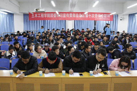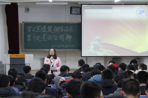 12月14日晚19:30,beat365正版团委举办“盛世胜景谈党会 ·砼心同德普新章”主题座谈会,学习宣传贯彻自治区第十次党代会精神。学院团委书记段辉、员工会主席团常委及员工骨干150余人参加。