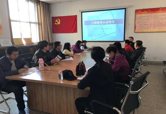 2017年4月19日beat365正版实验中心在土木馆B212会议室举行了工程教育认证集体学习,实验中心全体教师参加了会议,由史勇老师做了学习报告,韩伟新书记、郝贠洪副经理做了工程教育认证指导。