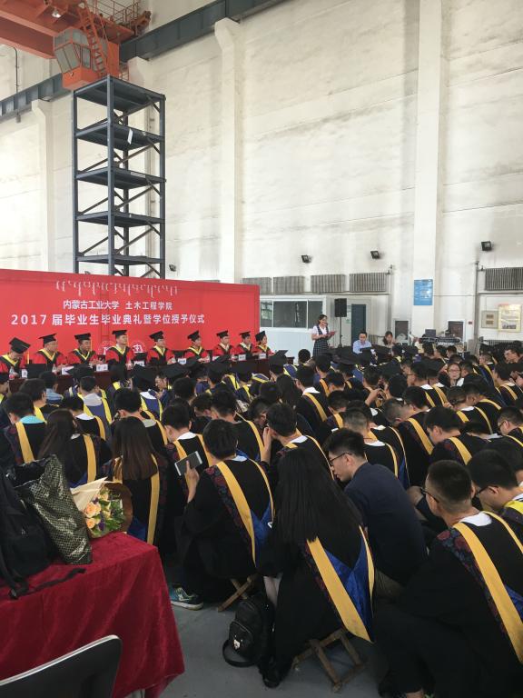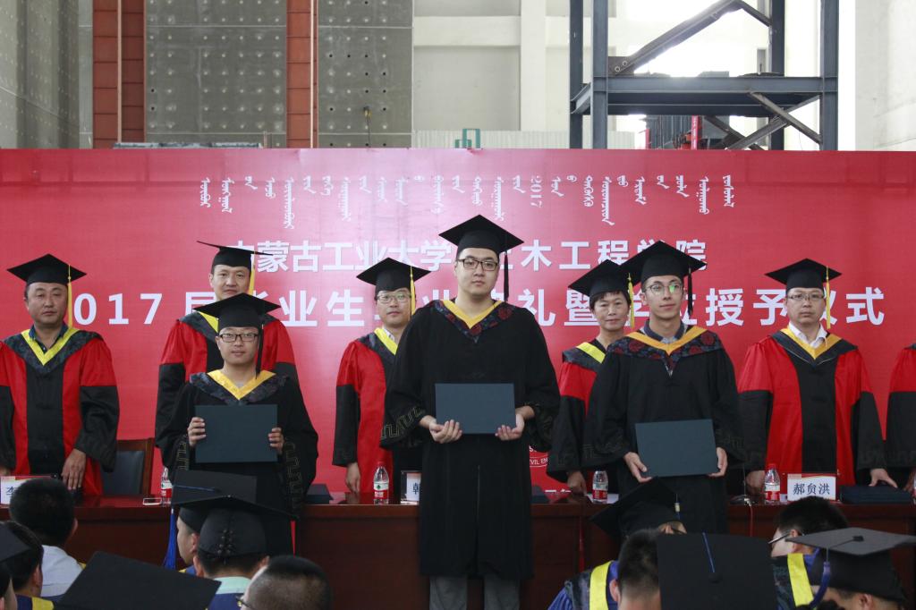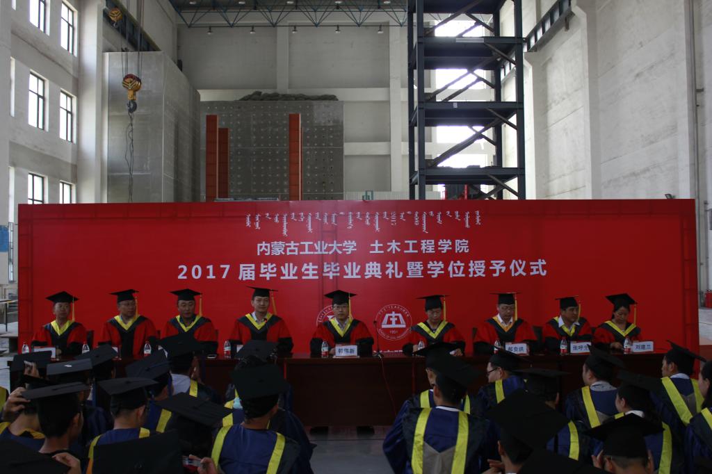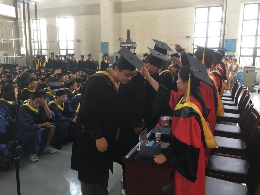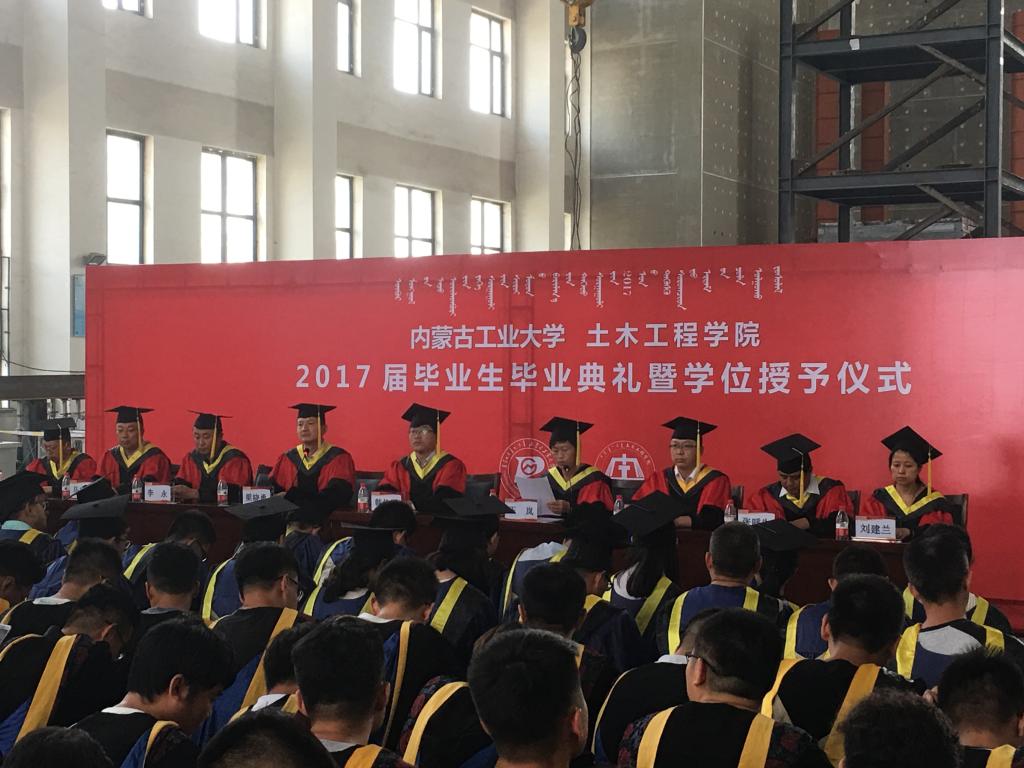 公司党委书记韩伟新首先向毕业生宣读了学校的各项表彰决定。副经理郝贠洪宣读授予硕士、学士学位名单,各位委员为获得学位的硕士、学士共779人依次拨穗正冠、授予学位。随后,李静同学代表研究生发言,土木13-2班的白雅日图同学代表本科生发言,建工系时金娜老师代表教师发言,道桥13-1班的张展铭同学宣读“路桥之心”助学金倡议书,公司路95级员工-内蒙古大学交通学院教师李卓英代表员工讲话。