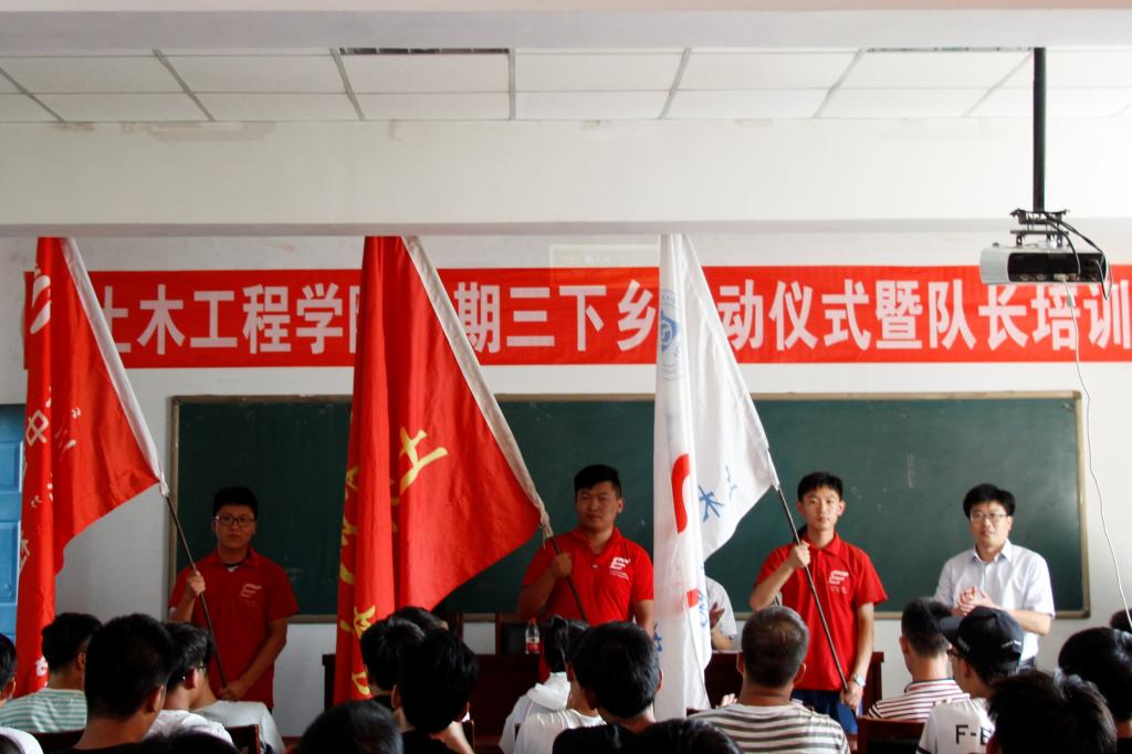 梁晓勇对本次实践活动进行了细致的安排部署,对活动主题、活动内容与形式、组织方式、实施步骤、相关要求等进行了介绍,佟姝婕为志愿者同学们讲解了安全预案。韩伟新为志愿者授旗。土木15-2班徐博群代表全体志愿者发言。社会实践优秀队长代表与同学们分享了以往的实践经历,会上还对实践活动的小队队长以及通讯员进行全面培训。