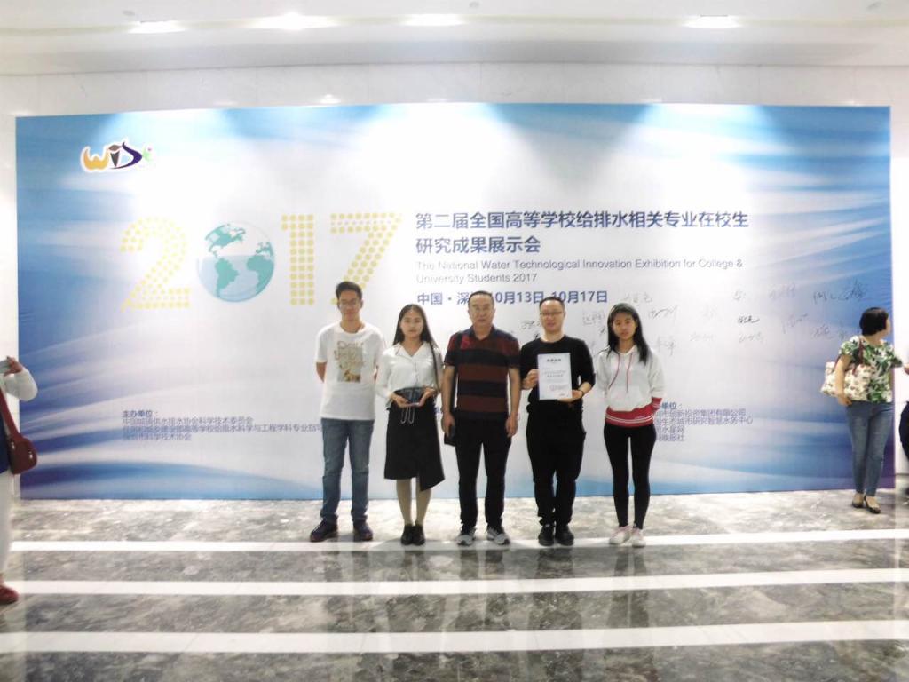 2017年10月13-17日,由“中国城镇供水协会科学技术委员会”、“住房和城乡建设部高等学校给排水科学与工程学科专业指导委员会”、“深圳市科学技术协会”联合主办的“第二届全国高等学校给排水相关专业在校生研究成果展示会”在深圳市深圳水务集团有限公司隆重举行。此次比赛设最佳专利奖、最佳产品奖、最佳方案奖、最佳论文奖四类奖项,每项分别设置金奖1名,银奖2名,铜奖5名。