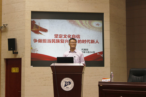 “学习贯彻党的十九大精神”全区高校优秀辅导员校园巡讲团成员,助理研究员、自治区优秀党务工作者,自治区首届高校辅导员年度人物,自治区优秀辅导员,学校优秀共产党员,优秀党务工作者,现任公司材料科学与工程学院团学工作办公室主任代维东。以《坚定文化自信,争做担当民族复兴大任的时代新人》为主题做了宣讲报告,紧密围绕着文化自信与伟大梦想的关系,坚定文化自信的几个角度,争做担当民族大任的时代新人三个方面展开了讲解,强调了文化自信即国家的力量,青年强则国家强,要求师生应深刻理解其丰富内涵,为人类文明做出贡献,对中华文化和中华民族的伟大复兴有担当。