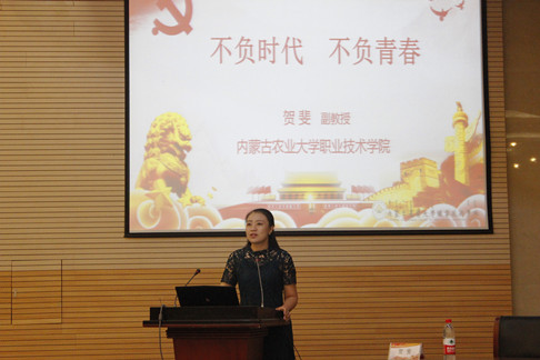 本次宣讲特邀自治区高校辅导员代表、2018年内蒙古自治区第四届辅导员年度人物、内蒙古自治区首个辅导员工作室负责人、内蒙古农业大学职业技术学院员工工作处副处长、团委副书记贺斐演讲,以“不负青春,不负时代”主题,紧密结合现实生活,通过对仪容仪表、自身涵养、课余生活等方面的讲解,对员工树立价值观及规划老员工活方面做出指引。并指出青年员工作为党组织培养的社会主义建设者和可靠接班人,要解除“依恋”心理,树立自强自立的价值观;要克服“畏惧”心理,勇于面对生活困难,从基层做起,从小事做起;要避免“失衡”心理,不断提升自我内涵。