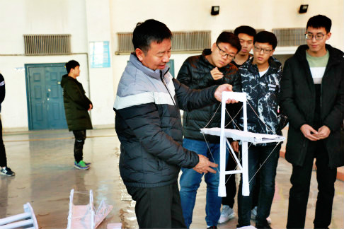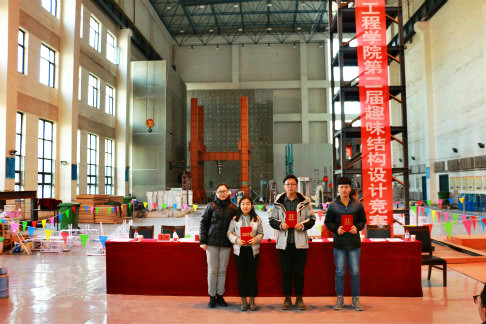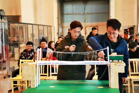 竞赛主要开展桥梁创意设计,要求参赛组自行设计制作一个桥梁装置,承载一辆重约3kg的小车通过桥面,在小车安全通过的情况下挠度的偏移不超过3cm。经过称重、加载、评委评审,最终来自土木17-2的田育松、安嘉伟、张英杰获得特等奖;工程17-1的池雨生,土木17-3的钱博、赵云基等共3组选手获得一等奖;土木18-3的张翼、王毅钊,土木18-1的张天晨等共5组选手获得二等奖;工程17-1的王建华、高德、魏焱旭等共10组选手获得三等奖;工程16-2的张敏、郝盈盈、石美媛获得最佳手工奖;工程18-2的田澳、齐翔获得最佳创意奖。